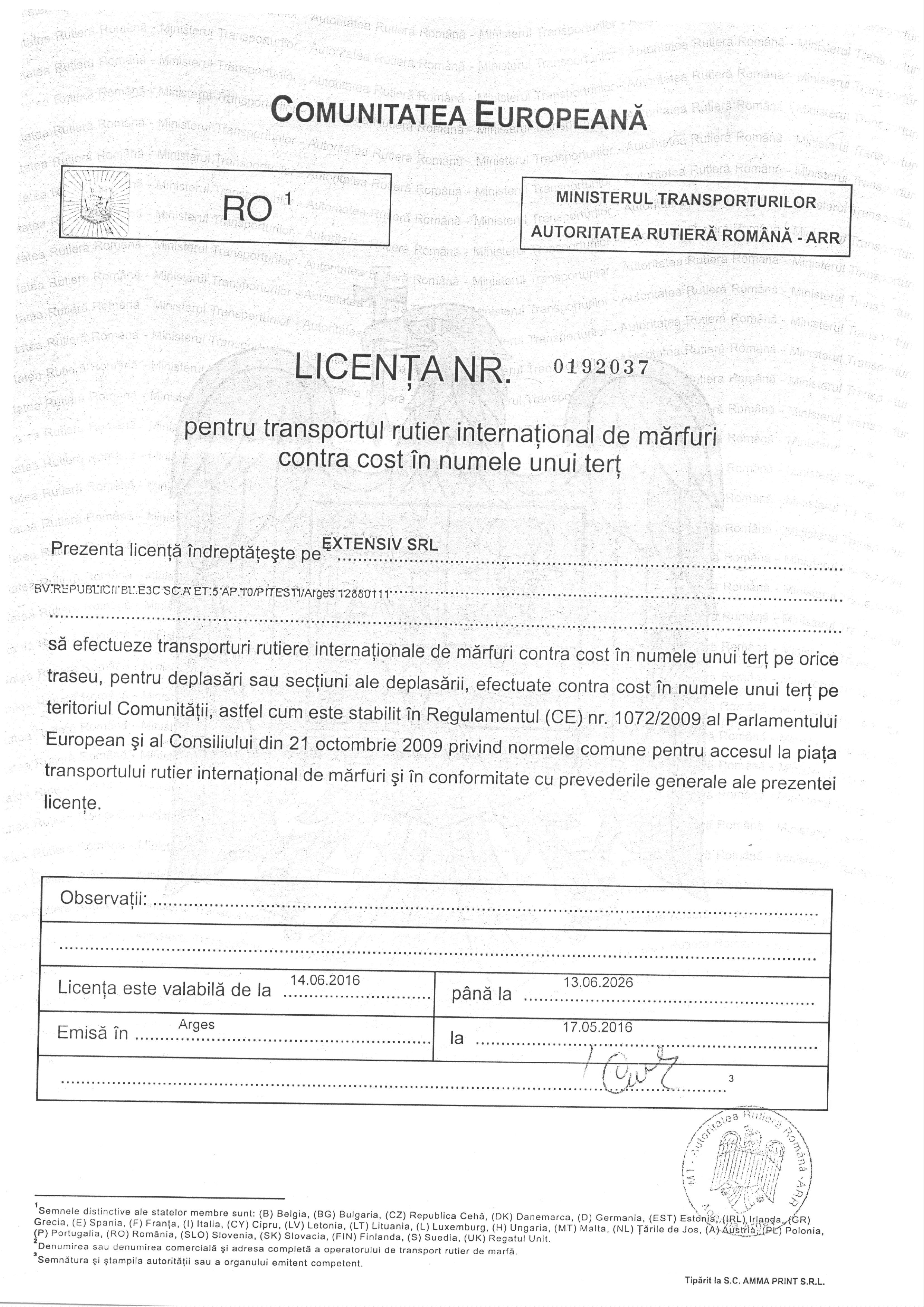 LICENTA TRANSPORT