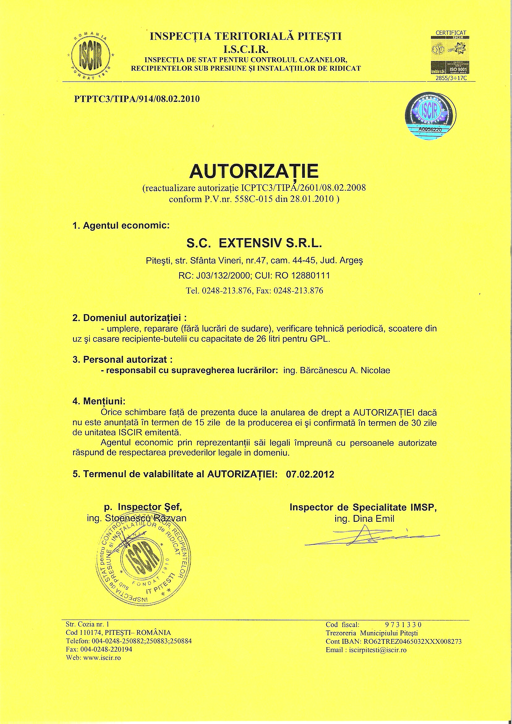 CERTIFICAT ISCIR